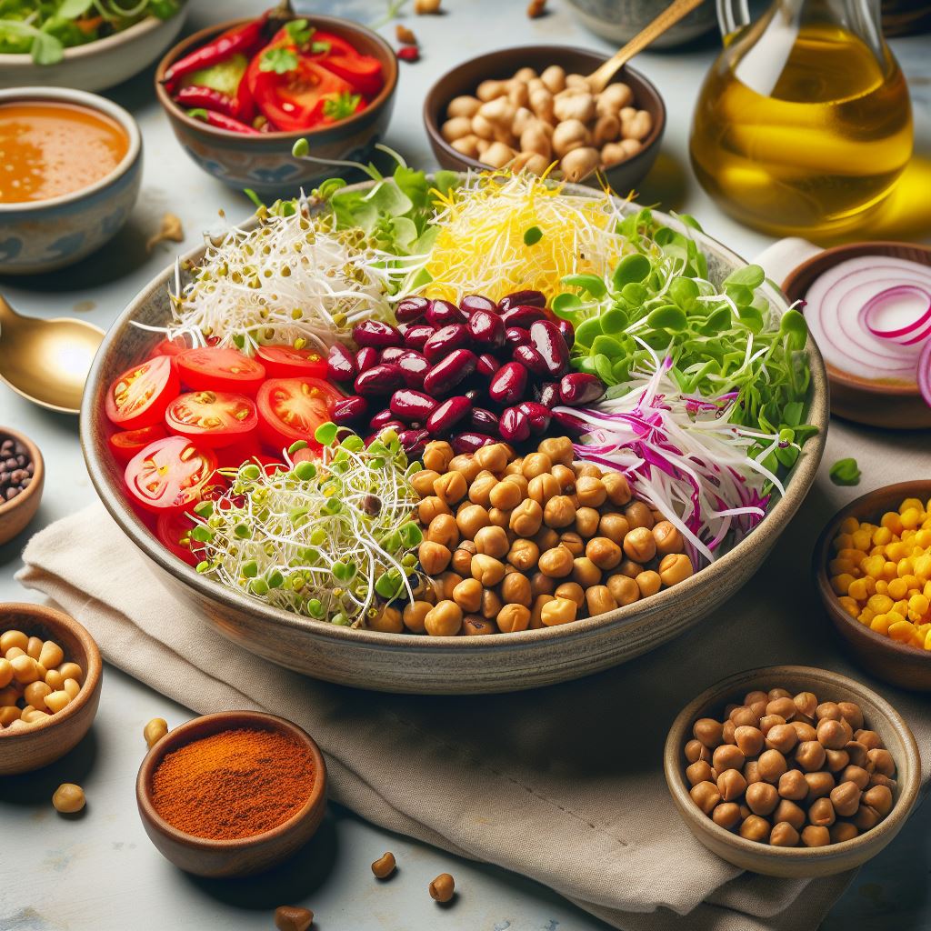 Protein-rich options like sprout salad with rajma or chana